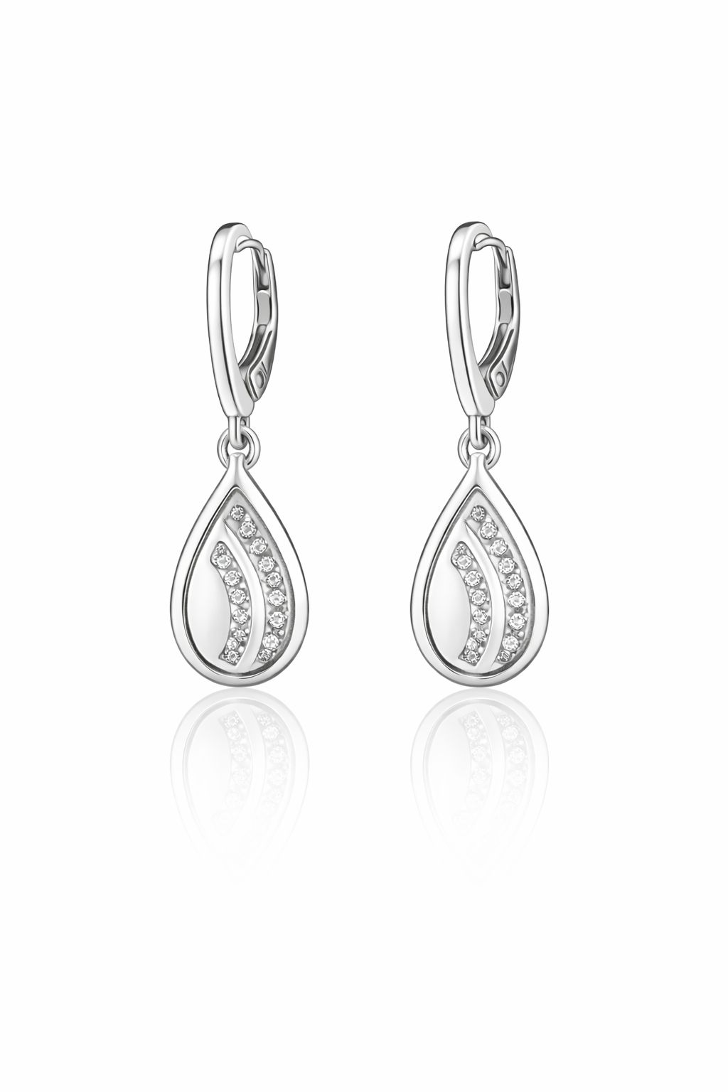 Eleganckie kolczyki wykonane ze srebra próby 925, o lekkiej formie kropli z dekoracyjnym, ażurowym wnętrzem. Smukły kształt pięknie układa się przy uchu i dodaje biżuterii lekkości oraz ponadczasowej elegancji.