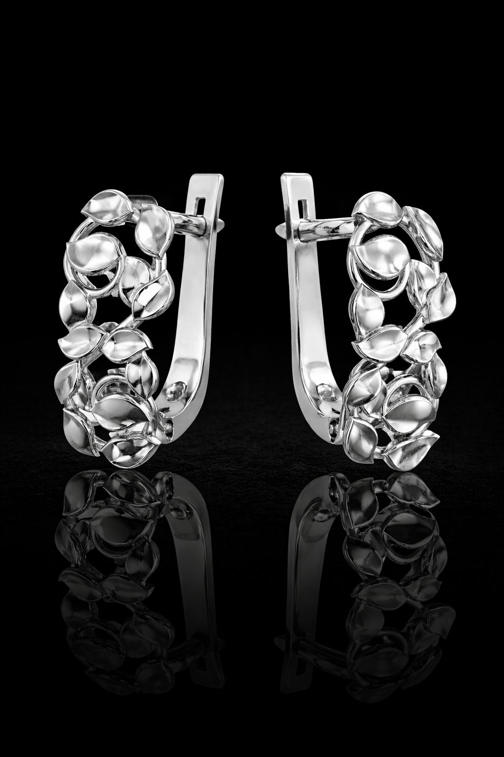 Eleganckie kolczyki wykonane ze srebra próby 925, ozdobione motywem drobnych liści tworzących lekką, ażurową kompozycję. Ich subtelny design sprawia, że są idealnym dodatkiem zarówno do codziennych stylizacji, jak i bardziej eleganckich zestawów.